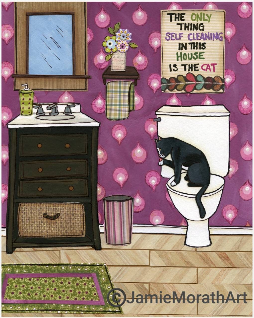 Self Cleaning Cat Art Print Etsy